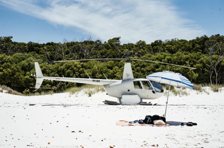 直升机往往会直接停在白天堂沙滩这边,机长会在沙滩上打开伞,铺上餐垫,让你在这世界第一的沙滩上享受香槟。