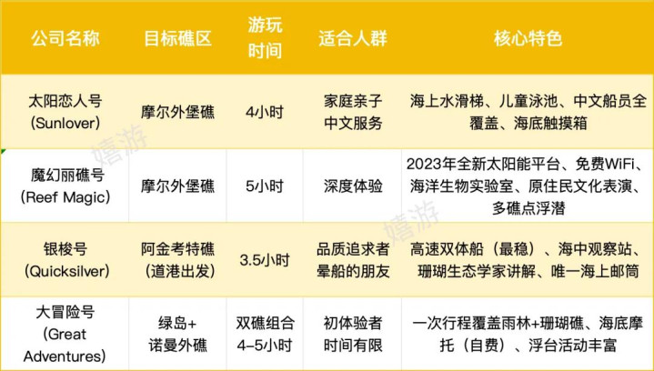 北部和中部主要是大堡礁,玩出海;