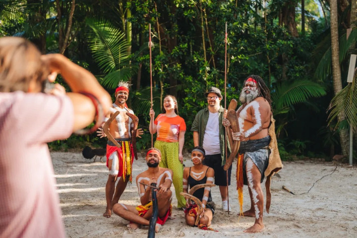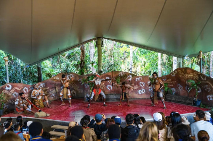 我们有尝试了回力镖、了解土著艺术和工具、观看土著人标枪投掷教学,最后还能与他们合影。