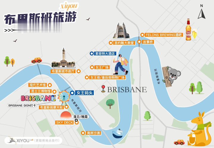 我们理过一个图,是布里斯班的城市景点图,照着逛不会错。