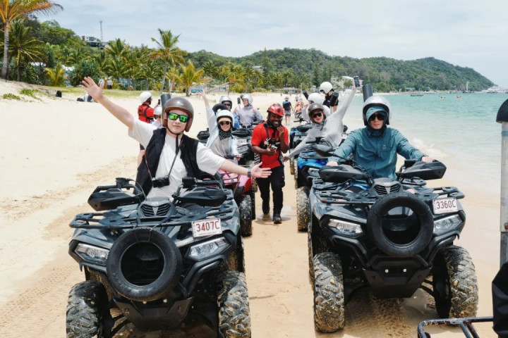 再比如全地形的四驱摩托车,可以骑着车穿过丛林沙地,超级爽的体验。就算不会驾驶也不要紧,和我一样坐在教练后面也能体验到驰骋的快乐。