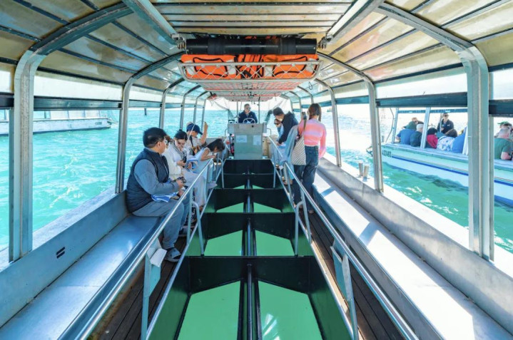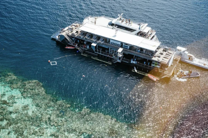 这个浮潜平台挺爽的,底层是透明玻璃船,在浮潜平台就能看鱼。