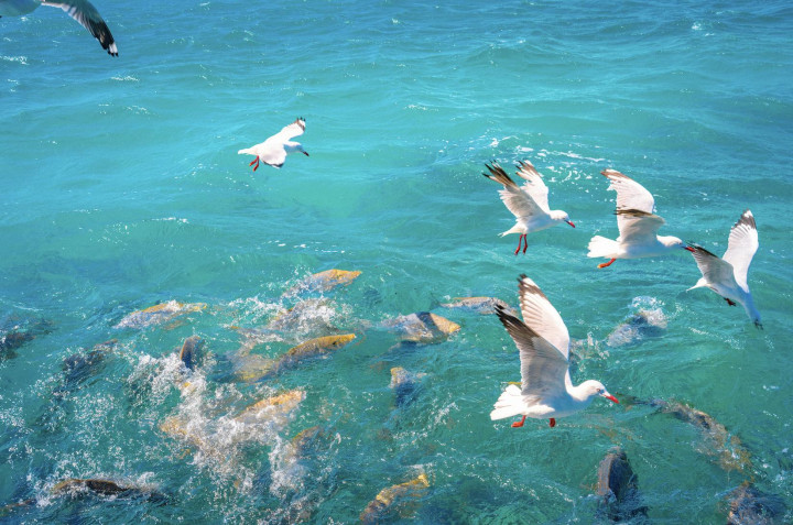 玻璃底船这个很适合不方便下水的人去体验,不仅能看到丰富的珊瑚礁、鱼群和海龟,还看到了海鸥与鱼儿“争食”的画面。如果要浮潜,浮潜装备可以在岛上领取(注意岛上不提供浮潜服,要自带泳衣哦)。